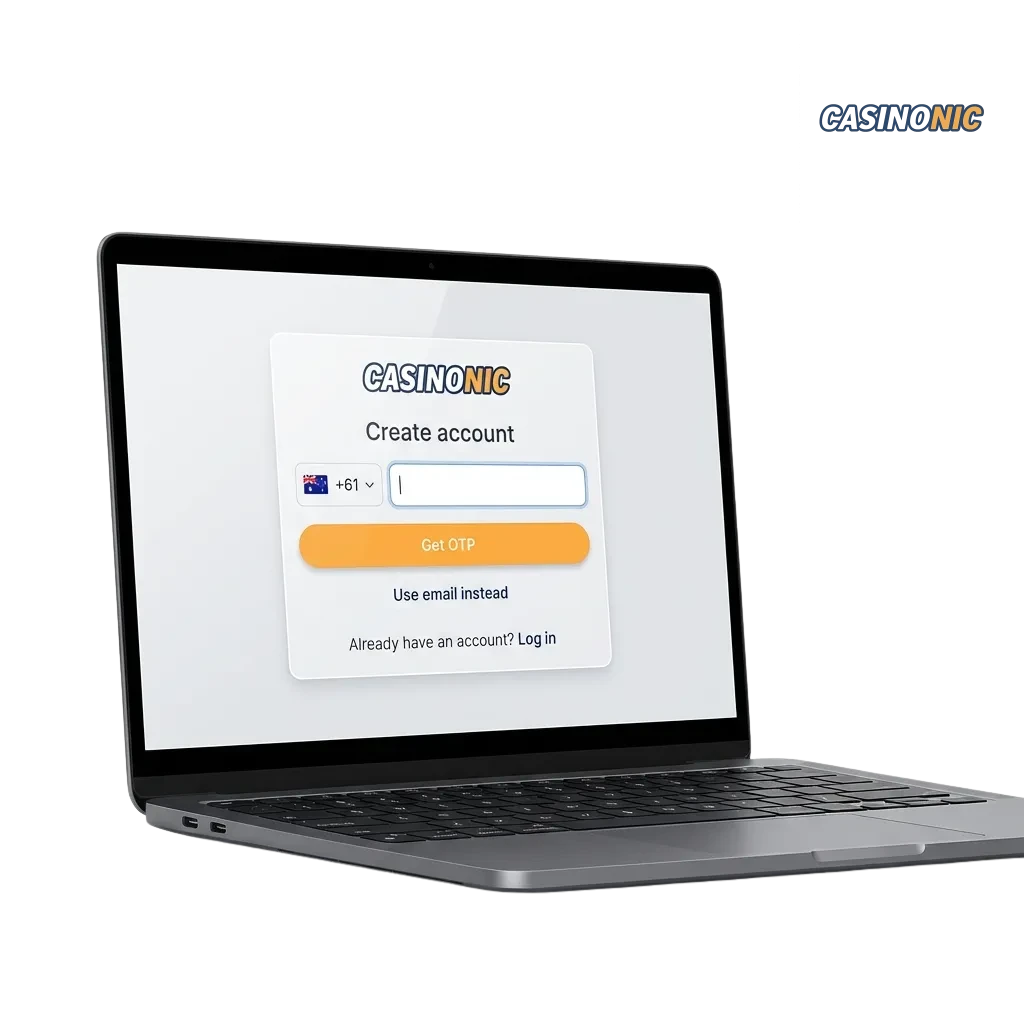 Registering on Casinonic opens access to both casino games and sports betting options tailored for Australian players. You can create an account using several methods, including phone number, email, social media, or one-click registration. Once registered, you can deposit funds, place bets, withdraw winnings, and claim the welcome bonus of up to €1200. The process takes just a few minutes to complete.